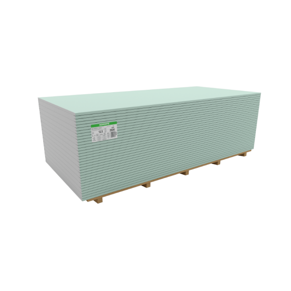 Гипсокартон влагостойкий стеновой NORGIPS (Норгипс) толщиной предназначен для использования в помещениях с повышенной влажностью - ванные комнаты, санузлы, кухни, подвалы, чердачные помещения.