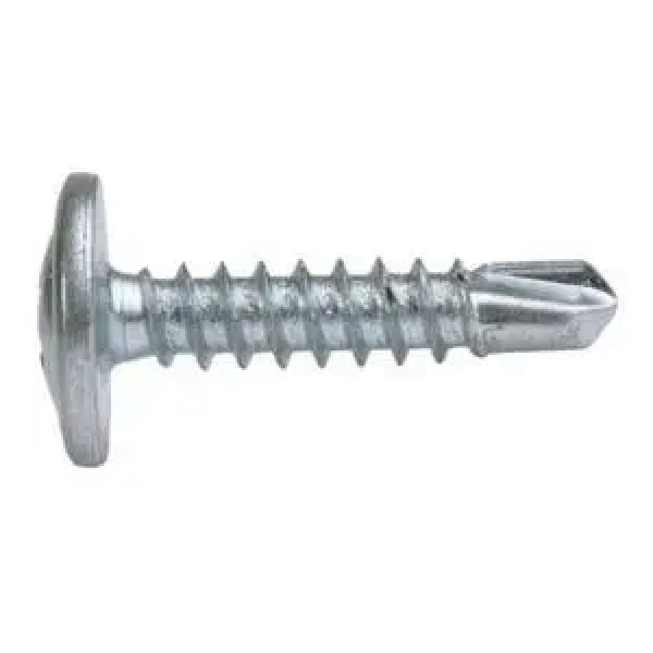 Саморез имеет плоскую шайбу и среднюю резьбу. Предназначается для крепления листового материала к металлу. Сверло позволяет проходить через металл толщиной до 0,9 мм без предварительного сверления. Шлиц в головке имеет размер под биту PH2. Изготовлен из стали и оцинкован.