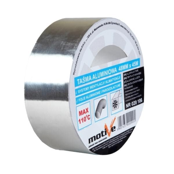 Лента на основе алюминиевой фольги. Стойкая к температурному воздействию. Предназначена для использования в системах кондиционирования, вентиляции, отопления. Производитель: Motive, Польша.