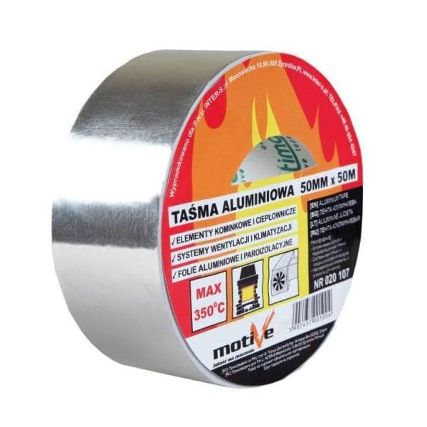 Термостойкая лента, в которой носитель представляет собой алюминиевую фольгу и силиконовый клей. Используется для изоляции каминных вставок. Эффективно соединяет огнеупорную минеральную вату. Производитель: Motive, Польша.