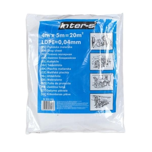 Особо прочная пленка для защиты поверхностей во время лакокрасочных работ 40мкм. Производитель: Inter-S, Польша.