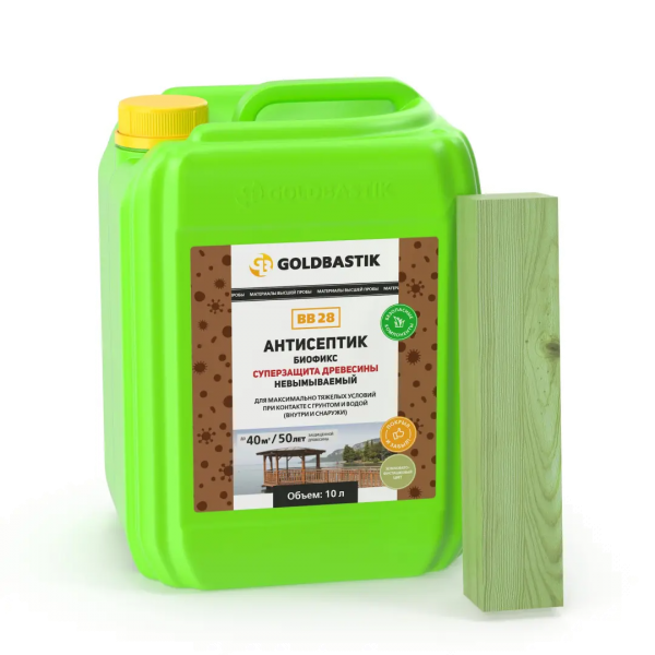 Невымываемый антисептик для профессиональной и долгосрочной защиты от всех видов биопоражений древесины различных пород при эксплуатации в особенно неблагоприятных условиях, в том числе в условиях активного биоразрушения (прямое и продолжительное воздействие атмосферных осадков, длительный контакт с грунтом, водой и органическими отходами). Исключительная защита от гниения, плесени, синевы, а также насекомых – древоточцев на срок до 50 лет. Применяется внутри и снаружи помещений.