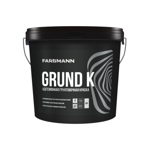Универсальная адгезионная грунтовочная краска FARBMANN GRUND K - это идеальная основа для нанесения штукатурки и рельефных красок. Также её можно использовать в качестве основного слоя для временной консервации фасадов на зимний период. FARBMANN GRUND K колеруется в тон основному покрытию, что позволяет не влиять на цвет финишного материала. Обладает устойчивостью к климатическим воздействиям в составе системы покрытия.