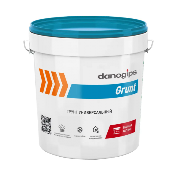 Грунт универсальный Danogips GRUNT создает адгезионную паропроницаемую пленку на поверхности, снижает и выравнивает впитывающую способность основания, а также качественно обеспыливает поверхность, в том числе после шлифования.
