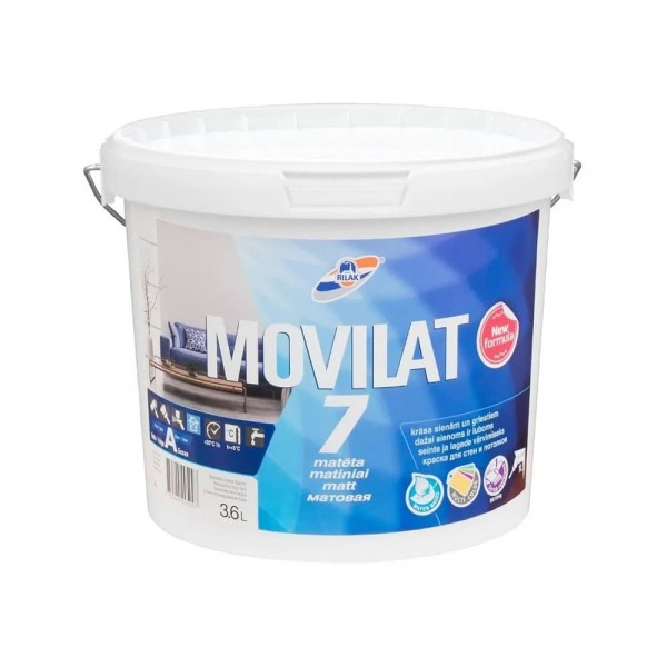 MOVILAT 7 - акриловая вододисперсионная краска. Образует матовое покрытие с легким шелковистым блеском. Обладает хорошей устойчивостью к мытью.