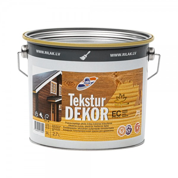 Защитный состав TEKSTURDEKOR предназначен для декоративной отделки и защиты деревянных поверхностей, эксплуатирующихся в атмосферных условиях.