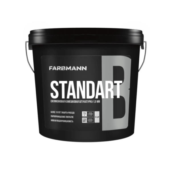 Декоративная силиконовая штукатурка FARBMANN STANDART B со структурой "барашек" преобразит внешний вид любого здания и создаст эффектный стиль на любой вкус. Поверхность, покрытая этим материалом, хорошо пропускает пар и имеет низкую водопроницаемость. Обработанный фасад будет надёжно защищён от атмосферных влияний более 10 лет. Подходит для колеровки как насыщенными, так и светлыми оттенками, что в комплексе со структурной фактурой создаст наиболее точный образ стилю здания.