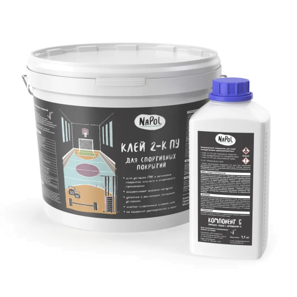 Не содержащий растворителей и воды, двухкомпонентный полиуретановый клей серого цвета для приклеивания всех видов резиновых покрытий в рулонах и плитах с гладкой подложкой или подложкой из гранулированной резины, гомогенных или гетерогенных ПВХ-покрытий, металла, бетона, керамики и др. Для работ внутри и снаружи помещений, применим для полов с подогревом. Для впитывающих и не впитывающих влагу оснований.