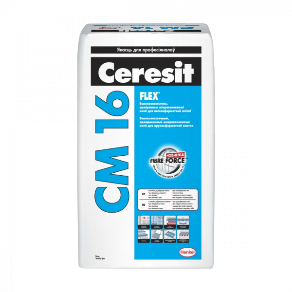 Высокоэластичный клей для плитки Ceresit CM 16 используется для приклеивания керамических, глазурованных, цементных и каменных плиток (кроме мрамора), а также плиток из искусственного камня, в том числе с водопоглощением менее 1% (керамогранит, грес) на жесткие, деформируемые и проблемные основания. Ceresit CM 16 рекомендуется для облицовки гибких перегородок (гипсокартонных и гипсоволокнистых плит, плит OSB, магнезитовых плит), обогреваемых полов, фасадов, террас и балконов, по подплиточной гидроизоляции CL 51, CR 65, CR 166, CR 90, а также в чашах бассейнов и резервуарах с водой. Высокая адгезия смеси позволяет укладывать плитки с водопоглощением менее 1%, например, керамогранит, грес, а также приклеивать плитки к проблемным основаниям – таким как существующие керамические плитки, прочные, с хорошей адгезией малярные покрытия, ангидритовые и гипсовые основания, ячеистый бетон. Ceresit СМ 16 может применяться для приклеивания плитки размерами до 1 м2. Ceresit CM 16 может применяться для облицовки каминов и печей. Расшивку швов на деформируемых основаниях выполнять эластичными составами Ceresit CE 40, CE 43, CМ 74. Плитки из мрамора и других светлых крупнокристаллических пород, склонных к изменению цвета, необходимо укладывать с помощью Ceresit CM 115, CM 74.