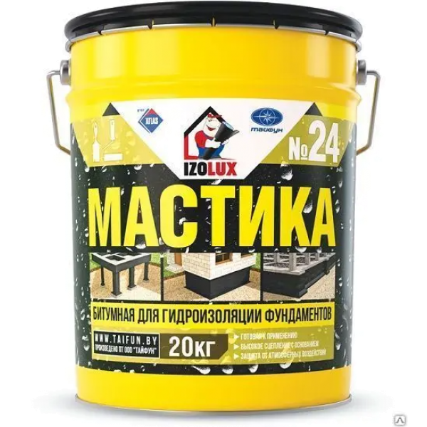 Нанесение мастики производится широкой кистью в один или несколько слоев. Для дополнительного усиления слоя гидроизоляции, может использоваться армирующая сетка.Мастика Изолюкс №24 производится в Беларуси компанией Тайфун - производитель сухих строительных смесей и кровельных материалов.