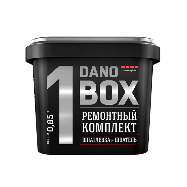 Dano Box 1 - ремонтный комплект для экспресс-ремонта. Используйте для заполнения трещин, выбоин, швов; отверстий в штукатурке, гипсе, кирпиче, камне, бетоне, древесине.