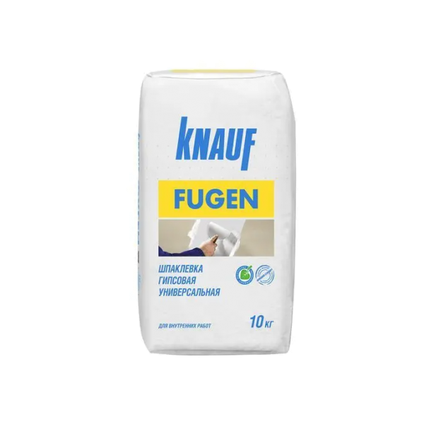 заделки стыков гипсокартонных КНАУФ-листов (ГКЛ), имеющих утонённую и полукруглую утонённую кромку, с использованием армирующей ленты; заделки трещин и других возможных повреждений гипсокартонных КНАУФ-листов (ГКЛ); тонкослойного шпаклевания плоских бетонных и оштукатуренных поверхностей; заполнения стыков сборных бетонных элементов; монтажа и заделки стыков гипсовых пазогребневых плит; приклеивания к ровной поверхности гипсокартонных листов и комбинированных панелей; склеивания и шпаклевания гипсовых элементов; Шпаклевка гипсовая универсальная КНАУФ-Фуген предназначена для: