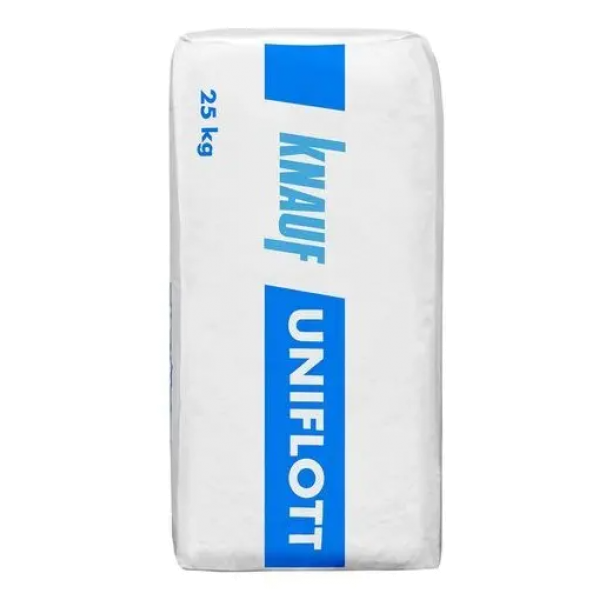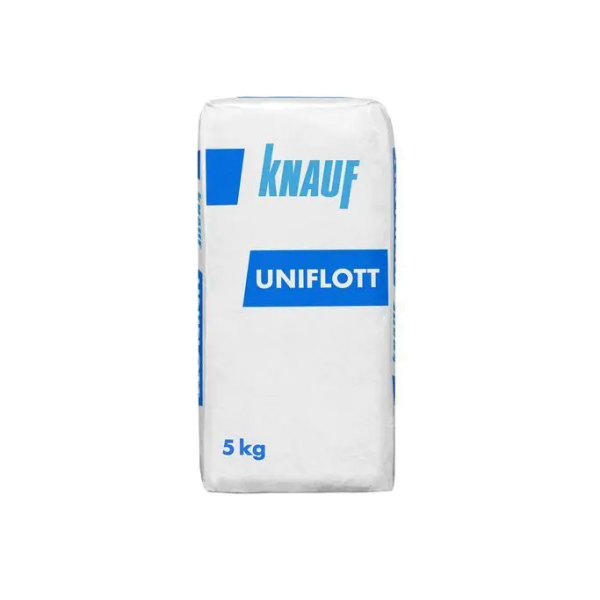 Шпаклевка гипсовая высокопрочная КНАУФ-Унифлот по своим технологическим и техническим показателям превосходит все аналогичные материалы. Особенно эффективна при заделке поперечных стыков гипсокартонных КНАУФ-листов; не трескается и не дает усадки; материал изготовлен из экологически чистого природного минерала (гипса) и не содержит вредных для здоровья человека веществ.