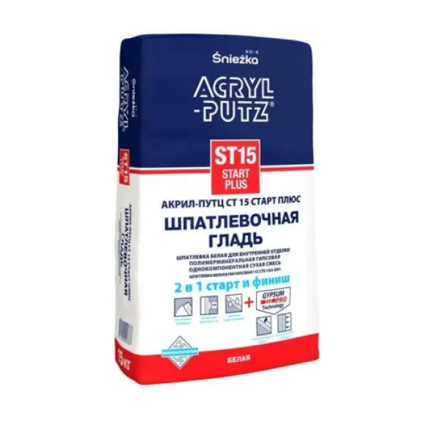 Снежно-белая шпатлевка для стен, потолков, а так же гипсокартонных плит. Шпатлевка Акрил Путц Ст 15 не дает усадки, быстро высыхает, не трескается даже при толстых слоях и легко шлифуется. Стены и потолки после применения шпаклевочной массы Акрил-Путц получаются идеально гладкими, их легко красить