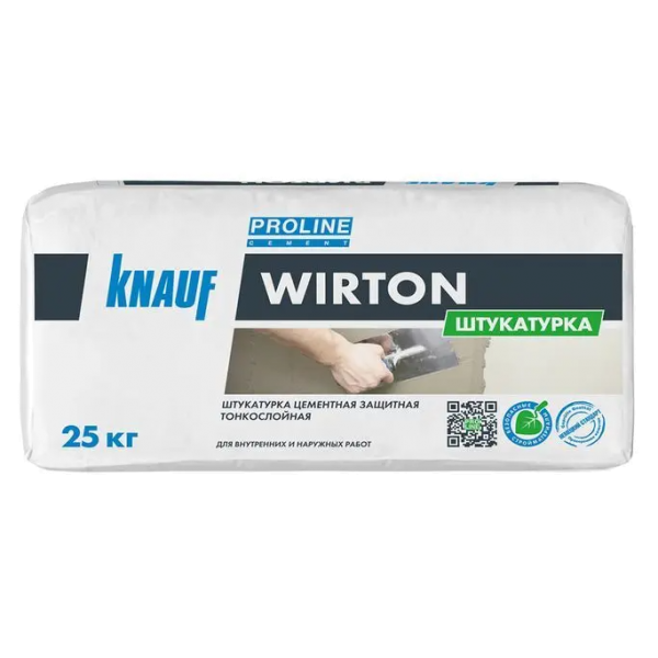 КНАУФ-Виртон — сухая смесь на цементной основе для наружных и внутренних работ. Содержит фракционированный песок, специальные армирующие волокна, полимерные и модифицирующие добавки, которые обеспечивают затвердевшей растворной смеси высокую прочность, адгезию, трещиностойкость и водоотталкивающие свойства.
