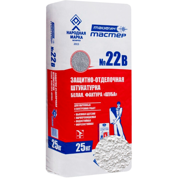 Защитно-отделочная штукатурка «Тайфун Мастер» №22с (серая), 22в (белая) применяется для устройства защитно-декоративного слоя с фактурой «шуба» в системах теплоизоляции «Тайфун», а также для устройства отделочных покрытий по минеральным основаниям внутри и снаружи помещений.