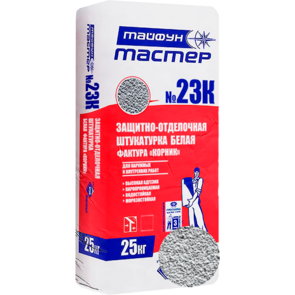 Декоративная штукатурка Тайфун Мастер №23К получила широкое применение в качестве финишного защитно-декоративного слоя в системах теплоизоляции. Тем не менее, штукатурку с фактурой «корник» (ее еще зачастую называют «камешковая») сегодня часто можно встретить в том числе и внутри офисных, административных зданий. Кроме того, декоративная штукатурка корник очень гармонично вписывается в интерьер многих Минских квартир. Такая востребованность обусловлена высокими эстетическими, эксплуатационными характеристиками, низким расходом, а также чрезвычайно низкой ценой.