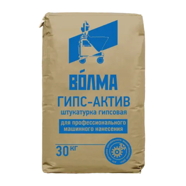 «ВОЛМА Гипс Актив» - сухая штукатурная смесь на основе гипсового вяжущего и легкого заполнителя с применением минеральных и химических добавок, обеспечивающих высокую адгезию, водоудерживающую способность и оптимальное время работы.