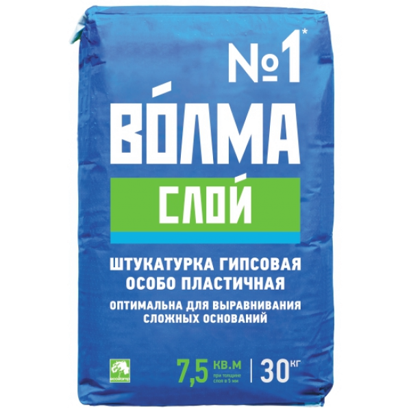 Штукатурка Волма слой гипсовая 30 кг - это недорогая гипсовая штукатурка. Является аналогом Тайфун-Мастер 20. Но у Волмы есть положительная особенность - можно наносить единый слой до 3 см. Как и все гипсовые штукатурки, ее нельзя использовать во влажных помещениях - ванная, уборная.