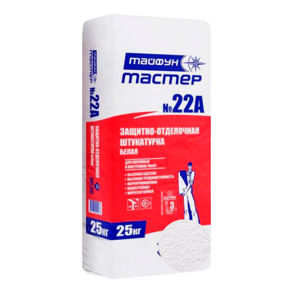 ТАЙФУН МАСТЕР № 22А Штукатурка защитно-отделочная финишная БЕЛАЯ гладкая 25кг.