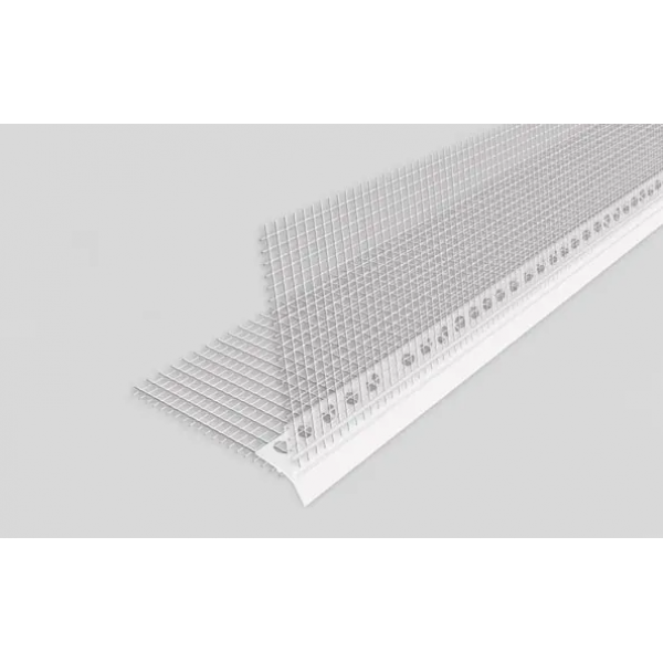 Предназначен для армирования и выравнивания штукатурного слоя внешних горизонтальных углов на фасадах зданий, в т.ч. при монтаже системы теплоизоляции штукатурного типа (например: оконные и дверные проемы, на коробах рольставен, несущих балконных основаниях, оконных откосах, беспрофильных цокольных соединениях и т.д.).