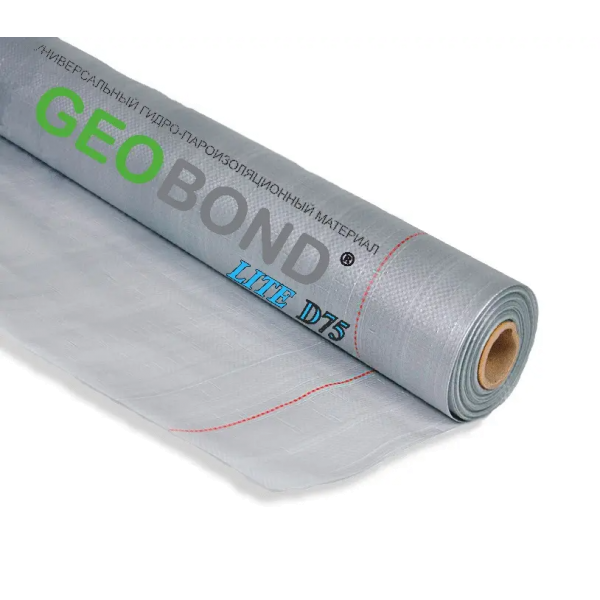 Применение GEOBOND LITE D75 в конструкции плоской кровли. В конструкциях плоской кровли материал GEOBOND LITE D75 применяется для защиты утеплителя и других элементов конструкции от паров изнутри помещения. GEOBOND LITE D75 раскатывается по плитам перекрытия или иному основанию с перехлестом полотнищ не менее 15-20см. Полотнища рекомендуется скреплять между собой соединительной лентой. Сверху на материал укладывается утеплитель и кровельное покрытие.